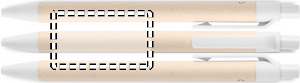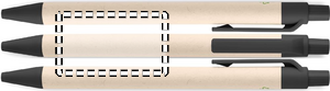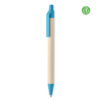 Push button ball pen with recycled milk cartons barrel (70 % recycled milk carton and 30% recycled paper) and PLA parts (in 100% biodegradable corn). Blue ink.