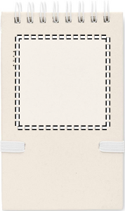 A6 Recycled milk cartons 70 sheet recycled plain paper notebook (70 % recycled milk carton and 30% recycled paper) with matching pen. Ring bound. Matching push button ball pen. Blue ink. Elastic closure strap and pen holder.