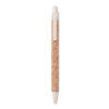 Push button ball pen with cork barrel and Eco-friendly wheat straw (50%) and ABS plastic (50%) fittings. Blue ink. Cork is a natural material, due to its structural nature and surface porosity the final print result per item may have deviations.