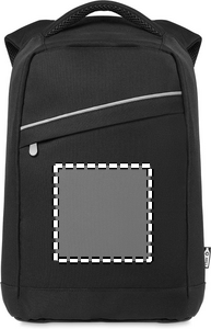 This 600D RPET backpack is great for everyday usage. Thanks to the padded shoulder strap it is comfortable to wear for longer periods. The main internal compartment can be opened completely so you have good access to all your items. The zipper is located on the backside for better security. The main compartment has smaller pockets which can hold many items. The backpack has a 13'' laptop or tablet compartment. A smaller front compartment can be used to store smaller items.