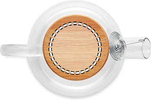 High borosilicate glass teapot with stainless steel infuser and bamboo lid,. Capacity 850 ml. Bamboo is a natural product, there may be slight variations in colour and size per item, which can affect the final decoration outcome.
