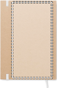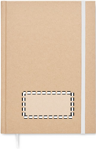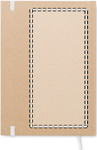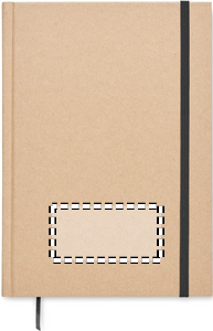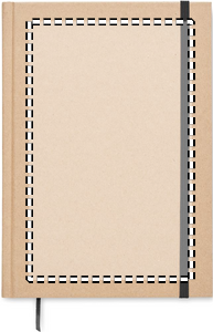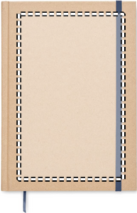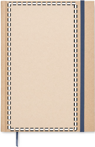 A5 notebook with hard recycled carton cover. Casebound. 200 lined recycled paper pages (100 sheets/80 gsm). Elastic closure strap and ribbon page-marker. Made in EU.