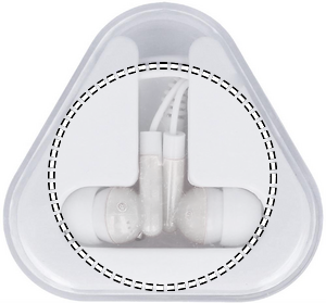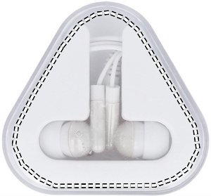 Earphones in PVC housed in a triangular PS case. Cable length 120 cm.