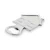 Zinc alloy bottle opener in house shape.