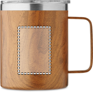 Double wall recycled stainless steel (90% recycled stainless and 10% stainless steel) mug with wooden look and sliding sip hole cover. Capacity: 300 ml.