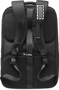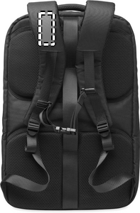 Large travel 17 inch laptop backpack in 600D RPET polyester. Features several compartments as one main for clothes, two padded for laptop, tablet and more. Padded back panel, shoulder strap, hand grip.
