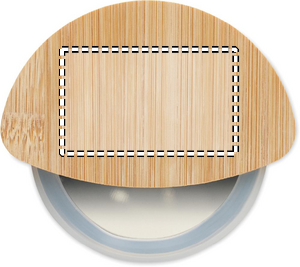 Round pizza cutter with bamboo handle and stainless steel blade. Features transparent white silicone protection ring.