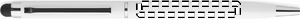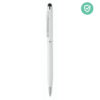 Twist action stylus ball pen in aluminium with shiny chrome clip. This pen has a special antibacterial barrel that contains a special additive (nano silver) that prevents bacteria from colonizing the surface of the pen. With the stylus tip you can easily operate touchscreens without having to use your fingers. ISO 22196. The pen has blue ink.
