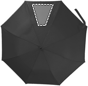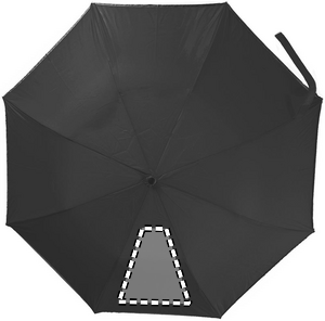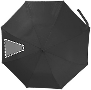 21 inch 2 fold auto open umbrella in 190T pongee with zincify plating steel shaft, ribs and tips. Panels with reflective trim. Black plastic handle with wrist strap. Includes matching pouch with reflective trims. Manual closure.