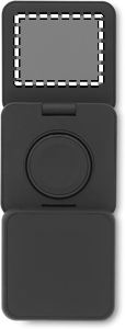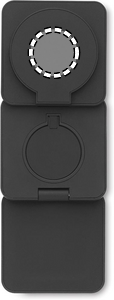 3 in 1 foldable charging station in rubberized recycled ABS. It includes a magnetic wireless charger 15W, smartwatch charger (Apple®only) and TWS charger.