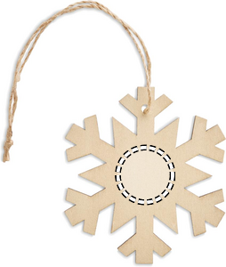Wooden snowflake shaped decoration hanger with jute cord. MDF is made from natural materials, there may be slight variations in colour and size per item, which can affect the final decoration outcome.