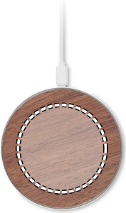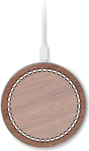 Wireless charger in recycled aluminium with walnut top detail. Connect device to your computer, place smartphone on it and allow it to charge. Output: DC 9V/1.67A (15W).