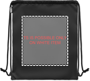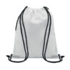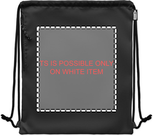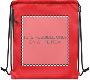 Large drawstring bag in 300D RPET polyester with side zippered outer pocket.