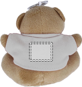Teddy bear plush key ring. 100% cotton t-shirt for logo imprint.
