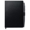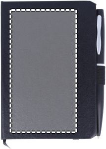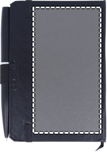 A6 notebook with pen. Hard PU cover. Casebound. 144 lined pages (72 sheets). Matching elastic closure strap, ribbon bookmark and pen holder. Matching metal push button ball pen. Blue ink. FSC MIX CREDIT | P7.1 | FSC-C213206