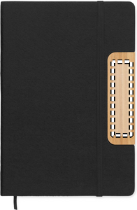 A5 RPET felt hard cover notebook set with phone stand functionality and push ball pen with bamboo barrel. Case bound. 160 recycled paper lined pages (80 sheets). Elastic closure strap. Ribbon bookmark. Blue ink.