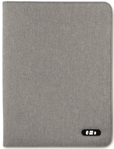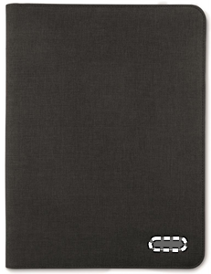 A4 conference folder in two-toned polyester. Zipped. 20 lined pages notepad. 3 compartments. Pen holder.