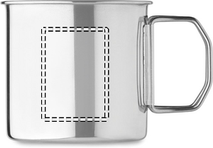 Single wall stainless steel mug with foldable handle. Capacity: 330 ml.