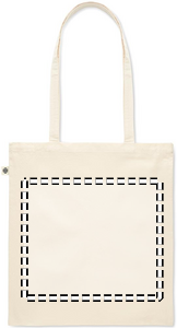 Organic cotton shopping bag with long handles. 180 gr/m². Take this convenient tote bag with you for your daily grocery shopping trip or use it at events. The long handles make it easy to carry over your shoulder to keep your hands free. Because it is made from organic cotton, this bag is a sustainable choice!