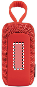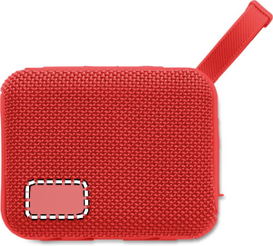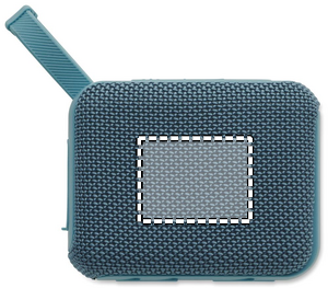 5.0 wireless speaker in ABS with RPET fabric and hanging cord. 1 Rechargeable Li-ION 800 mAh battery included. Includes an SD card port and an AUX/ USB cable. Output data: 5W, 3 Ohm and 5V. Playing time approx. 3h
