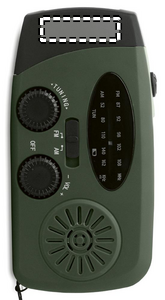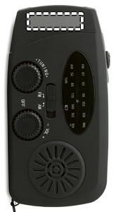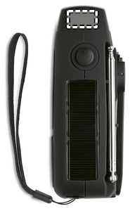 Portable AM/FM radio in ABS with LED Torch (2 settings) and a 1200mAh Power bank for emergency charging. Self powered by solar and hand crank.
