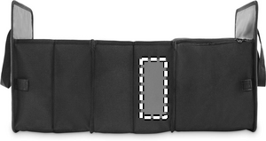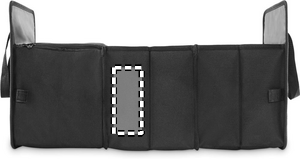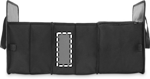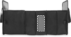 Foldable car organizer in 600D RPET polyester with 3 compartments of which one cooler compartment.