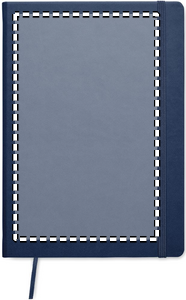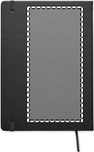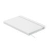 A5 notebook with hard PU cover. Casebound. 200 lined pages (100 sheets) in recycled paper (80 gsm). Matching elastic closure strap and ribbon page-marker. Made in EU.
