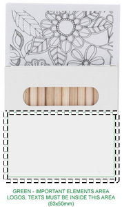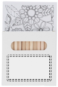 Drawing adult set with 10 cards and 12 coloured pencils in recycled paper box.