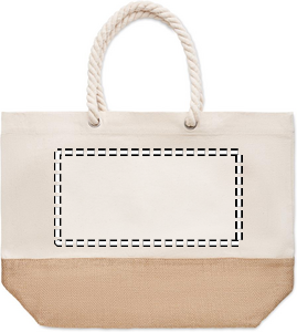 Beach bag or shopping bag in canvas with cord handle and jute detail. 280 gr/m².