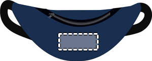 Fanny bag in 210D polyester with zippered main compartment and adjustable waist strap.