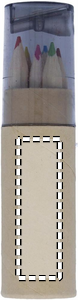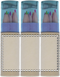 6 piece colouring pencils in recycled paper tube. Pencil sharpener transparent lid.