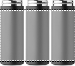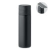 Double wall vacuum insulating bottle in recycled stainless steel (90% recycled stainless steel and 10% stainless steel) with silicone non-slip phone holder ring lid. Leak-free. Capacity: 420 ml.
