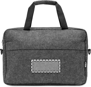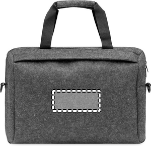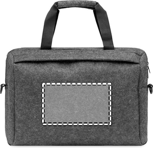 15 inch laptop bag in RPET felt including one main internal compartment and one zippered front pocket. Includes detachable and adjustable shoulder strap. Trolley holder on reverse side.