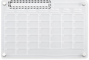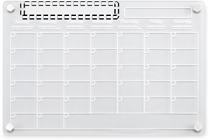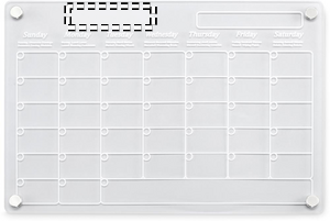 Magnetic acrylic monthly planner in A4 size with 3 erasable magnetic markers (black, red and white). Includes screws for mounting.