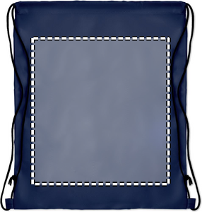 Large drawstring bag in 210D polyester with zippered front pocket.