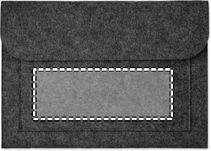 Documents bag or 15 inch laptop pouch in RPET felt, 2mm thick, with front pocket and hook and loop closing.