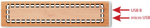 Power bank 2200 mAh in Bamboo case. Capacity for smartphone use, out put current DC5V/1A. Includes indicating light and USB cable with micro USB plug. Including Type C connector. Bamboo is a natural product, there may be slight variations in colour and size per item, which can affect the final decoration outcome.