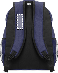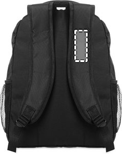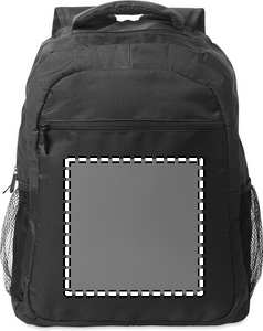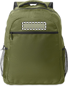 Laptop backpack 15inch in 600D RPET polyester with padded laptop compartment inside, mesh pockets on both sides and zippered front pocket.