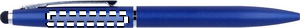 Twist action ball pen in aluminium with stylus and matt finish. Blue ink.