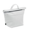 Recycled cotton (70% recycled cotton, 30% recycled polyester) insulated lunch cooler bag with rolltop hook and loop closure. Insulation: 3mm PE foam with 12C PEVA.