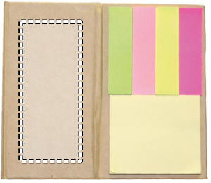 House-shaped recycled cardboard memo note dispencer. 300 recycled sheets memo block. 2 piece sticky note memo pad. Medium yellow sticky notes pads and 4 assorted colours page markers.