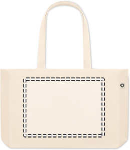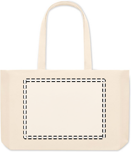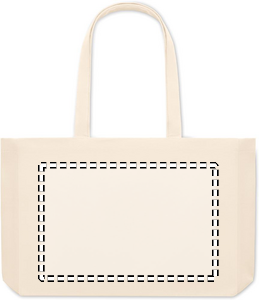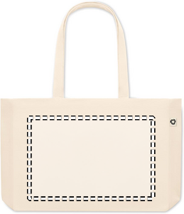 280 gr/m² recycled canvas shopping bag or beach bag. This tote bag has long handles so it can be carried by hand or over the shoulder to keep your hands free. The gusset base makes it very useful to bring a lot of items with you to the beach or when grocery shopping. The bag is made from 50% cotton and 50% recycled cotton.