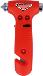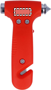 3 in 1 emergency hammer with belt cutter and LED light made of ABS. 3 AG3 batteries included.