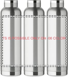 Double wall vacuum insulating bottle in recycled stainless steel (90% recycled stainless steel and 10% stainless steel) with built-in straw and handle lid. Capacity: 660 ml.