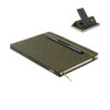 A5 notebook with RPET hard cover with phone holder functionality. Integrated 2-in-1 inkless and regular ballpen in ABS. Casebound. 192 recycled paper lined pages (96 sheets). Matching strap and bookmark. FSC®-certified | FSC MIX CREDIT, P7.1, FSC-C213206