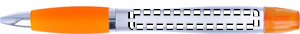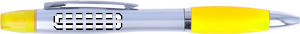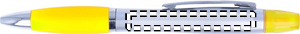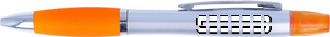 2 in 1 plastic ball pen and highlighter in silver satin finish and chromed fittings. Blue ink.