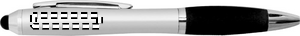 Twist action ball pen in ABS with stylus soft grip and matching tip. Blue ink