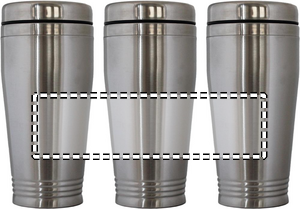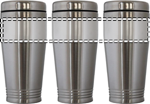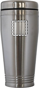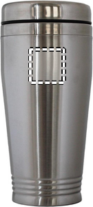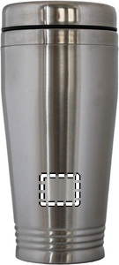 Double wall stainless steel travel cup with black PP lid. Capacity: 400 ml.