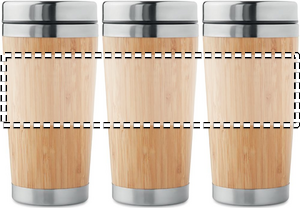 Double wall stainless steel flask with bamboo cover and PP lid. Capacity: 400 ml. Bamboo is a natural product, there may be slight variations in colour and size per item, which can affect the final decoration outcome.