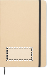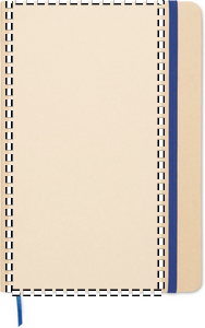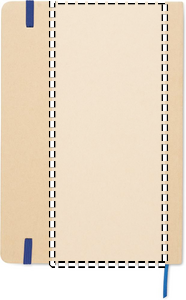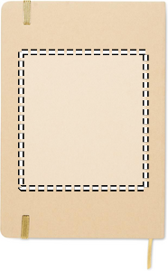 A5 notebook with hard recycled carton cover. Beige cover. Case bound. 160 lined recycled paper pages (80 sheets). Elastic closure strap, ribbon bookmark matching with revealed colour. After laser engraving the colour is revealed. FSC®-certified | FSC MIX CREDIT, P7.1, FSC-C213206